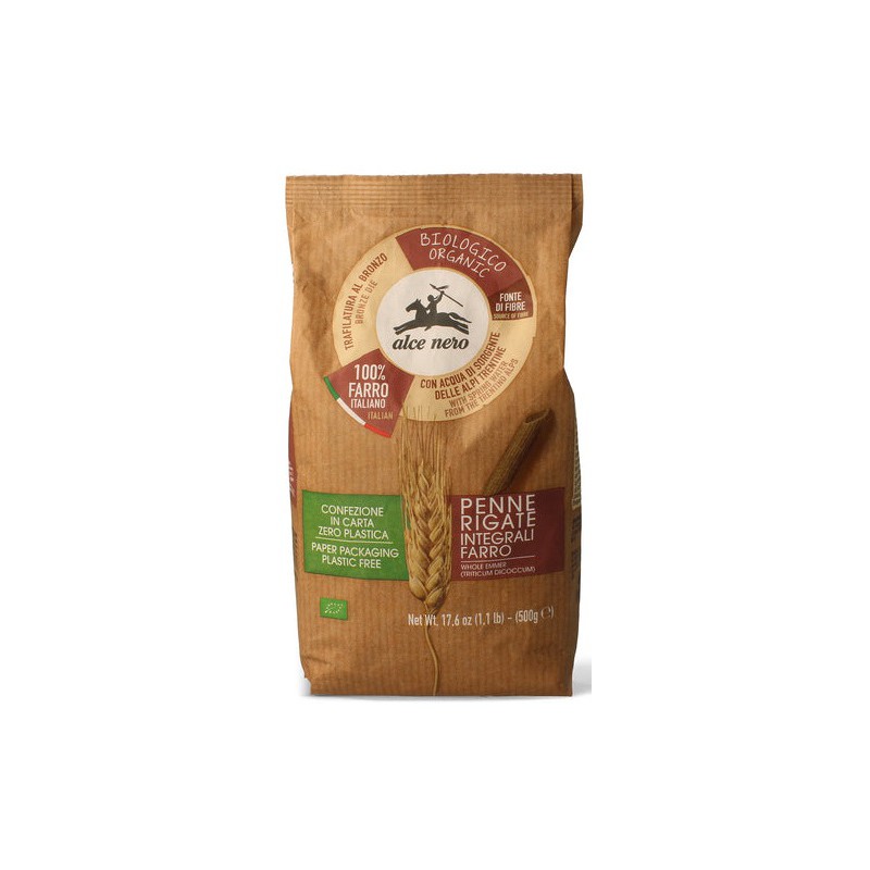 Wyśmienity makaron PENNE z ekologicznej mąki z pszenicy płaskurki z pełnego przemiału. Polecamy z sosami pomidorowymi Alce Nero.